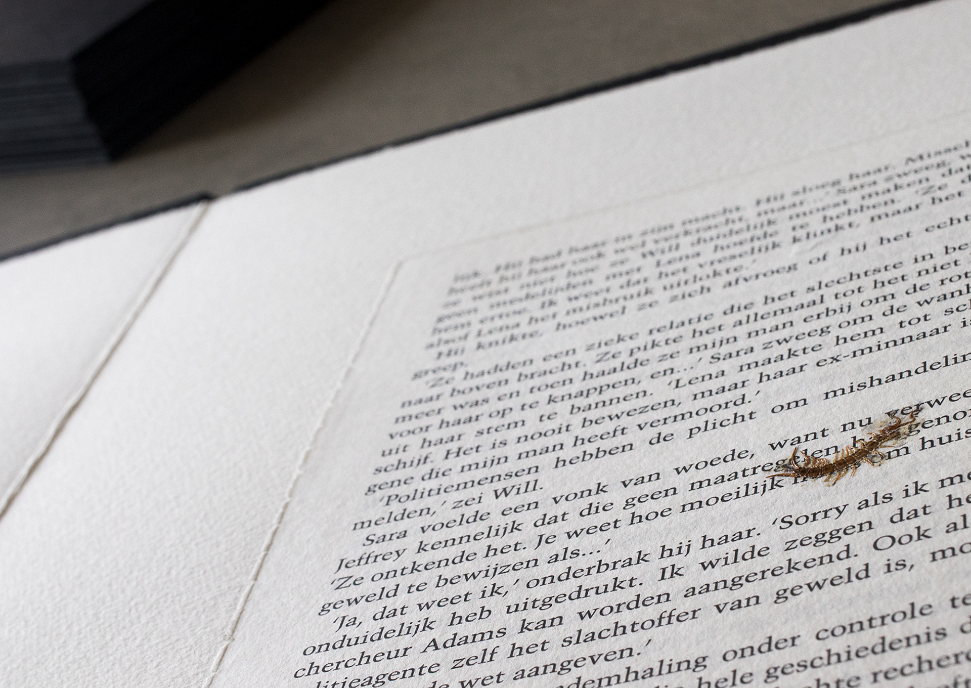 Van de bijna 2400 mishandelde pagina’s die ze daarbij hebben gedocumenteerd, hebben ze weer enkele nieuw ingebonden boeken gemaakt, netjes op volgorde van paginanummer. Daarnaast zijn interessante pagina's die de boeken niet hebben gehaald, opgenomen in aantal presentatiemappen. Ook lijmden ze zeven boeken bladzijde per bladzijde dicht met boekbinderslijm zodat er monumentale blokken zijn ontstaan die aan de muur opgehangen kunnen worden. De voorkant van elk blok bestaat uit een mishandelde pagina.
